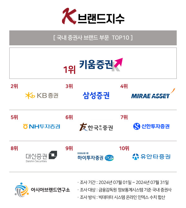 아시아브랜드연구소 - 키움증권, ′K-브랜드지수′ 증권사 부문 1위 등극···지난 8위에서 급부상