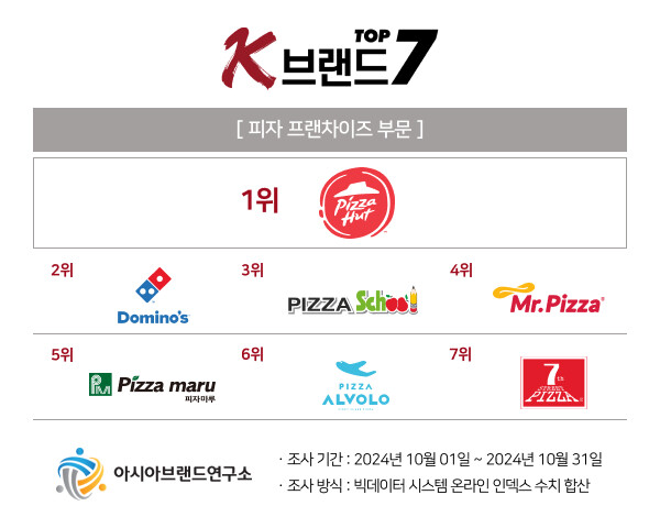 아시아브랜드연구소 - 아시아브랜드연구소 선정 1위 피자헛, ‘K-브랜드 톱7’ 피자 프랜차이즈 부문 발표